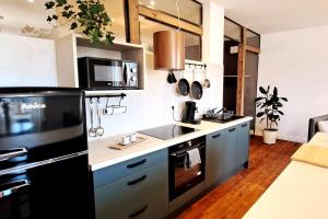 The well-equipped kitchen has a stovetop, a refrigerator, a dishwasher and kitchenware. The spacious apartment features a tea and coffee maker, a seating area, a dining area, a flat-screen TV, as well as river views. The unit has 1 bed.