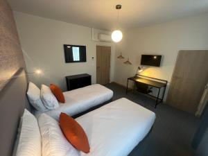 Cette chambre double dispose de la climatisation et d'une armoire. La salle de bains privative est pourvue d'une douche et d'un sèche-cheveux. Offrant une vue sur la ville, cette chambre double est dotée du chauffage et d'une télévision à écran plat.