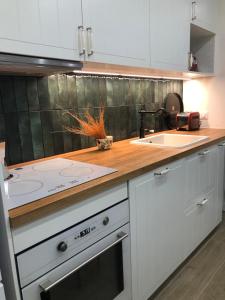 Featuring a private entrance, this holiday home is comprised of 1 living room, 2 separate bedrooms and 1 bathroom with a walk-in shower and a hairdryer. The well-equipped kitchen features a stovetop, a refrigerator, a dishwasher and kitchenware. The holiday home offers a washing machine, a coffee machine, a seating area as well as a terrace with sea views. The unit provides 4 beds.