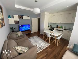This apartment's standout feature is the fireplace. Featuring a private entrance, this air-conditioned apartment is comprised of 1 living room, 2 separate bedrooms and 1 bathroom with a shower and a bidet. Guests will find a stovetop, a refrigerator, a dishwasher and kitchenware in the well-fitted kitchen. The apartment also has a barbecue. The spacious apartment offers a washing machine, soundproof walls, a tea and coffee maker, a flat-screen TV with streaming services, as well as sea views. The unit provides 4 beds.