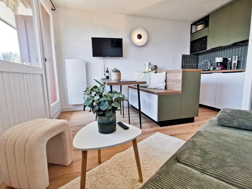 Apartmán má 2 ložnice, 1 koupelnu, ložní prádlo, ručníky, TV s plochou obrazovkou s kabelovými programy, kuchyň s kompletním vybavením a balkon s výhledem na hory. Koupelna v La Montagnarde avec vue imprenable - station Doucy Valmorel - 4pers zahrnuje vanu nebo sprchu a toaletní potřeby zdarma.