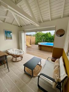 This bungalow features a pool with a view. Boasting a private entrance, this air-conditioned bungalow features 1 living room, 1 separate bedroom and 1 bathroom with a shower and a hairdryer. Guests will find a stovetop, a refrigerator, kitchenware and an oven in the kitchen. The bungalow also comes with a barbecue. Featuring a terrace with garden views, this bungalow also features a washing machine and a flat-screen TV with streaming services. The unit has 1 bed.