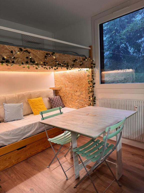 Cet appartement au La Petite Cabane Nomade 2 personnes comprend une chambre et une cuisine équipée d'un réfrigérateur, d'un four et d'une machine à café. La Petite Cabane Nomade 2 personnes fournit des serviettes et du linge de lit moyennant un supplément.