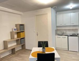 Apartmán La Place - Appartement cosy 1 CH au cœur de Calais zahrnuje 1 ložnici, TV s plochou obrazovkou a kuchyň.