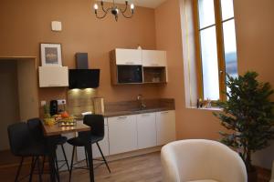 The apartment with a balcony and city views features 2 bedrooms, a living room, a flat-screen TV, an equipped kitchen with a dishwasher and an oven, and 1 bathroom with a shower. Towels and bed linen are featured at the property. For added privacy, La République d'Emmanuel features a private entrance.
