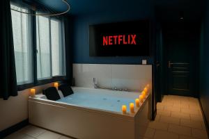The hot tub is the standout feature of this apartment. This apartment comes with a kitchen, a seating area, 1 separate bedroom and 1 bathroom with a bath and a hairdryer. In the well-fitted kitchen, guests will find a stovetop, a refrigerator, kitchenware and an oven. The apartment features a flat-screen TV with streaming services, a washing machine, a coffee machine, a dining area as well as an inner courtyard view. The unit has 1 bed.