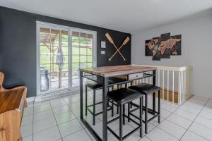 Guests will have a special experience as this chalet features a hot tub and a fireplace. Featuring a private entrance, this air-conditioned chalet is comprised of 1 living room, 3 separate bedrooms and 2 bathrooms with a bath and a shower. Guests will find a stovetop, a refrigerator, a dishwasher and kitchenware in the kitchen. The chalet also has a barbecue. The spacious chalet offers a washing machine, a coffee machine, a seating area, a flat-screen TV with streaming services, as well as river views. The unit offers 8 beds.
