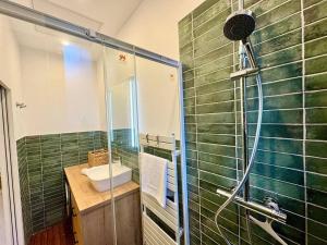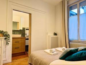Apartament La suite Jade de Reims - Cathédrale mieści sypialnię, salon, łazienkę z prysznicem i suszarką oraz kuchnię z lodówką i ekspresem. Ręczniki i pościel są dostępne w apartamencie La suite Jade de Reims - Cathédrale.