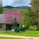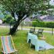 This apartment at the property features 1 bedroom, a flat-screen TV, a seating area, a bathroom with a shower, and a kitchen with a dishwasher and oven. Towels and bed linen are available at the property. La Suite Unique - Le jardin sur les Pyrénées- vue panoramique montagne -jardin clôturé privé de 100m2-Parking-Linge de lit et serviettes compris- includes an outdoor dining area.