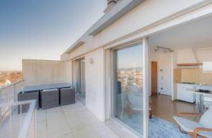 Questo appartamento dispone di 1 camera da letto, 1 bagno, lenzuola, asciugamani, una TV a schermo piatto con canali satellitari, un angolo cottura con utensili e una terrazza con la vista sulla città.