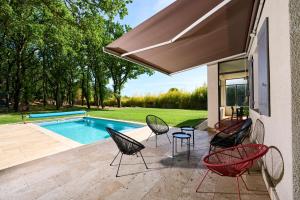 The private pool is the standout feature of this holiday home. Boasting a private entrance, this air-conditioned holiday home features 1 living room, 3 separate bedrooms and 2 bathrooms with a shower. Guests will find a stovetop, a refrigerator, a dishwasher and kitchenware in the fully equipped kitchen. The holiday home also comes with a barbecue. Featuring a terrace with garden views, this holiday home also features a washing machine and a flat-screen TV. The unit has 5 beds.
