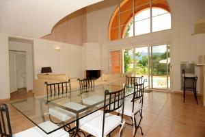 This villa features a furnished terrace, a private pool, a living room and TV, 3 bedrooms and 2 bathrooms. The kitchen is equipped with an oven, dishwasher and refrigerator.