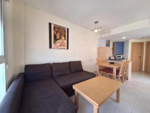 Questo appartamento con aria condizionata comprende 1 camera da letto, un soggiorno, una cucina con utensili, frigorifero e macchina da caffè, e 1 bagno con vasca da bagno. Laguna Beach - Terraza & parking fornisce lenzuola e asciugamani ai propri ospiti.