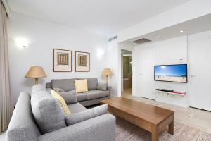This apartment's special features are the hot tub and the spa bath. The air-conditioned apartment features 2 bedrooms, 1 bathroom with a shower and a kitchen. Guests will find a stovetop, a refrigerator, a dishwasher and kitchenware in the well-equipped kitchen. The apartment also offers a barbecue. Featuring a balcony with pool views, this apartment also provides a seating area and a flat-screen TV with cable channels. V této ubytovací jednotce je k dispozici 3 postele.