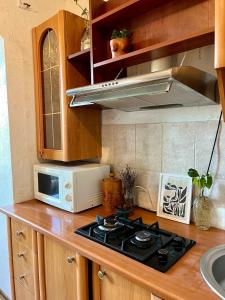 Apartament w obiekcie składa się z sypialni, w pełni wyposażonej kuchni z lodówką i mikrofalówką oraz łazienki z prysznicem i bezpłatnym zestawem kosmetyków. Ręczniki i pościel są dostępne w apartamencie.
