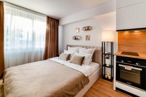 Klimatizovaný apartmán Lake Sunset Studio - aproape de plajă, nou, modern tvoří 1 ložnice, plně vybavená kuchyň s lednicí a troubou a 1 koupelna. Koupelna v ubytování zahrnuje sprchu a toaletní potřeby zdarma. V ubytování ubytování jsou pro hosty připraveny ručníky a ložní prádlo.