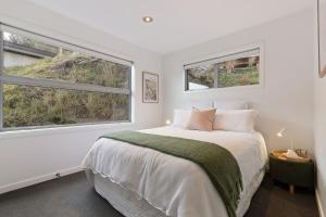 V prázdninovém domě Lake Views on De La Mare Place, 3 BDR, Free Wi-Fi & Parking jsou 3 ložnice, 2 koupelny, satelitní TV s plochou obrazovkou, jídelní kout, plně vybavená kuchyň, ložní prádlo a ručníky. Z balkonu ubytování ubytování se otevírá výhled na hory. Koupelna v ubytování disponuje sprchou, pračkou, fénem a toaletními potřebami zdarma.