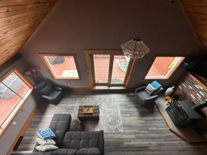 The hot tub and fireplace are the special features of this holiday home. Boasting a private entrance, this air-conditioned holiday home comes with 1 living room, 3 separate bedrooms and 2 bathrooms with a bath and a shower. Guests will find a stovetop, a refrigerator, a dishwasher and an oven in the well-fitted kitchen. The holiday home also includes a barbecue. The spacious holiday home features a flat-screen TV, a washing machine, a tea and coffee maker, tumble dryer as well as lake views. The unit has 5 beds.