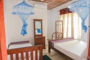 The triple room features air conditioning, a seating area, as well as a private bathroom boasting a shower and a bidet. The triple room provides a tiled floor and garden views. The unit has 2 beds.
