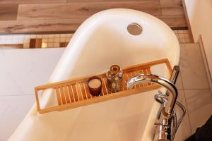 В собственной ванной комнате в Landhaus Trinis - Kleine Kaffee Tee Theke mit Kühlschrank - Parkplatz есть душ и фен.