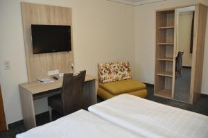 The quiet, bright rooms at the Landhotel Karrenberg have carpeted floors, and an en-suite bathroom with a hairdryer..