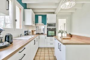 Questa casa vacanze ha 4 camere da letto, una cucina con frigorifero e lavastoviglie e 1 bagno con doccia, asciugacapelli e lavatrice. Presso Lanton - 700m plage - Extérieur et charme avrete a disposizione una TV.