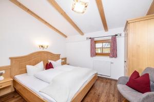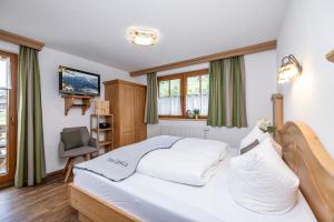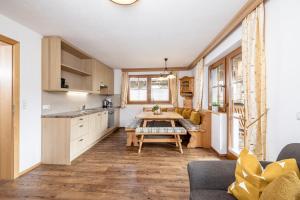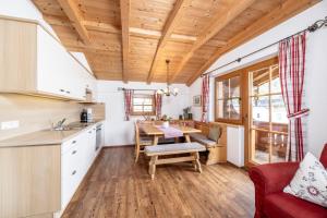 Apartment with a balcony, a combined sleeping and living room and an open-plan kitchen with dishwasher. The Alpine-style apartment comes with wooden floors.