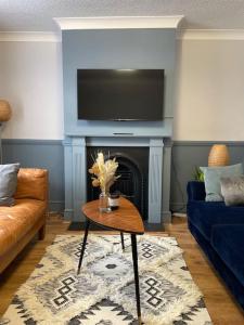 La casa en Large house with fast trains to London cuenta con dos dormitorios, zona de estar con TV de pantalla plana, baño con ducha y cocina con nevera y lavavajillas. La casa o chalet Large house with fast trains to London proporciona toallas y ropa de cama.