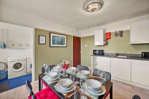 Prázdninový dům Large House with Parking and Garden - Sleeps 7 má 3 ložnice, 2 koupelny, obývací pokoj s TV a plně vybavenou kuchyň s jídelním koutem a lednicí. Koupelna v ubytování ubytování disponuje vanou i sprchou.
