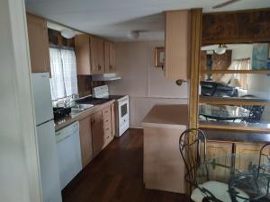 Prázdninový dům large three bedroom 2, bath home in a 55 community má 1 ložnici, TV s plochou obrazovkou a kuchyň.