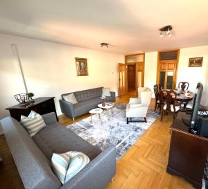 Klimatizovaný apartmán ubytování má 2 ložnice, obývací pokoj, plně vybavenou kuchyň s lednicí a myčkou a 1 koupelnu. Koupelna v Latin Bridge Sarajevo - 3 Room Apartment, 80m2 in Villa with free private parking - Old Town Sarajevo zahrnuje sprchu a toaletní potřeby zdarma. V ubytování Latin Bridge Sarajevo - 3 Room Apartment, 80m2 in Villa with free private parking - Old Town Sarajevo jsou pro hosty připraveny ručníky a ložní prádlo.
