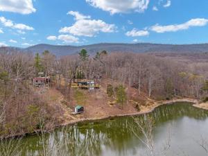 Cette maison de vacances avec climatisation se compose de 3 chambres, d'un salon, d'une cuisine entièrement équipée avec un réfrigérateur, ainsi que de 1 salle de bains avec un bain à remous et un sèche-cheveux. Vous trouverez des serviettes et du linge de lit à Lazy Lake 3BR Cabin w/ Mtn Views + Hot Tub +Wi-Fi.