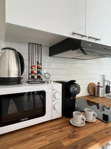 Klimatizovaný apartmán Le Belfort - Grand T2 climatisé en hyper centre zahrnuje 1 ložnici, obývací pokoj, plně vybavenou kuchyň s lednicí a mikrovlnnou troubou a 1 koupelnu. Koupelna v ubytování zahrnuje sprchu a toaletní potřeby zdarma. V ubytování Le Belfort - Grand T2 climatisé en hyper centre jsou pro hosty připraveny ručníky a ložní prádlo.