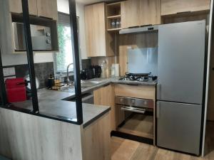 Featuring a private entrance, this air-conditioned mobile home consists of 1 living room, 3 separate bedrooms and 1 bathroom with a walk-in shower and a hairdryer. Guests will find a stovetop, a refrigerator, a dishwasher and kitchenware in the well-fitted kitchen. The mobile home also offers a barbecue. Boasting a terrace with garden views, this mobile home also provides a washing machine and a flat-screen TV. The unit offers 6 beds.