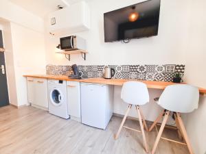 Rooms: 1Featuring a private entrance, this apartment consists of a kitchen, 1 bedroom and 1 bathroom with a shower and a hairdryer. Meals can be prepared in the well-fitted kitchen, which is equipped with a stovetop, a refrigerator, kitchenware and an oven. The apartment provides a flat-screen TV with cable channels, a washing machine, a tea and coffee maker, heating as well as city views. The unit provides 1 bed.