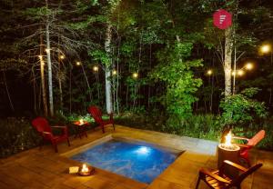 This chalet features a private pool, hot tub and sauna. Boasting a private entrance, this air-conditioned chalet features 1 living room, 2 separate bedrooms and 2 bathrooms with a walk-in shower and a bath. Guests will find a stovetop, a refrigerator, a dishwasher and kitchenware in the well-equipped kitchen. The chalet also comes with a barbecue. The spacious chalet features a washing machine, a tea and coffee maker, a seating area, a flat-screen TV with streaming services, as well as garden views. The unit has 3 beds.