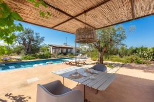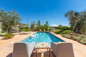 This holiday home has a dining area, oven and washing machine. Opposite to the main unit, there are two characteristic buildings that complete the house.