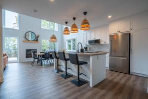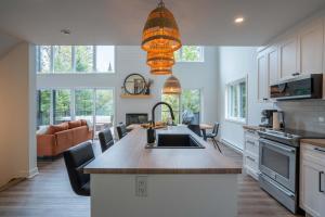 Ce chalet avec climatisation se compose de 5 chambres, d'un salon, d'une cuisine entièrement équipée avec un réfrigérateur, ainsi que de 3 salles de bains avec un bain à remous et un sèche-cheveux. Vous trouverez des serviettes et du linge de lit à Le Chalet des Hauts-Bois - Spa and Mountain.