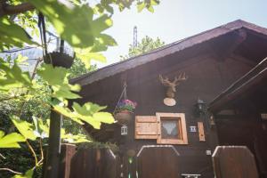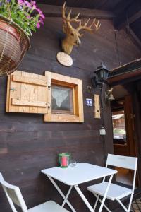 The chalet has a living room, a bathroom with a bathtub and a kitchenette. The sleeping area is on a mezzanine which is accessed via a ladder.
