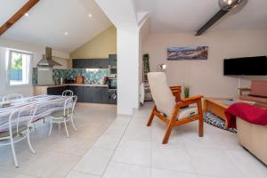 Boasting a private entrance, this holiday home features a kitchen, 2 bedrooms and 1 bathroom with a shower and a hairdryer. Guests will find a stovetop, a refrigerator, a dishwasher and kitchenware in the well-equipped kitchen. The holiday home also comes with a barbecue. Featuring a terrace with garden views, this holiday home also features a washing machine and a TV with cable channels. The unit has 3 beds.
