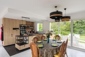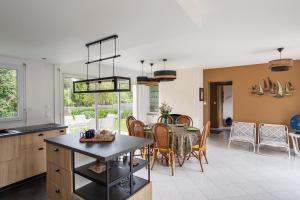 Prázdninový dům má 3 ložnice, 2 koupelny, ložní prádlo, ručníky, TV, kuchyň s kompletním vybavením a terasu s výhledem do zahrady. Koupelna v Le clos de la Roche Angevin - Charmante maison 6 voyageurs disponuje sprchou, pračkou, fénem a toaletními potřebami zdarma.