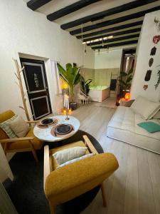 The apartment at Le cocon Bourbonnoux includes 1 bedroom, 1 bathroom, bed linen, towels, a flat-screen TV with streaming services, a dining area, a fully equipped kitchen, and a terrace with garden views. Guests at Le cocon Bourbonnoux can enjoy a meal in the outdoor dining area with views of the inner courtyard. For added privacy, the property features a private entrance.
