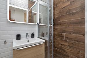 Apartmán v Le cocon rouennais - Terrasse - Climatisation - Gare je vybaven satelitní TV s plochou obrazovkou. Kuchyňský kout v Le cocon rouennais - Terrasse - Climatisation - Gare je vybaven lednicí, mikrovlnnou troubou a varnou deskou, zatímco v koupelně je sprcha, fén a toaletní potřeby zdarma.