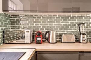 The well-fitted kitchen features a refrigerator, a dishwasher, an oven and a microwave. The spacious apartment offers a washing machine, a tea and coffee maker, a high chair for children, heating, as well as a flat-screen TV. V této ubytovací jednotce je k dispozici 3 postele.