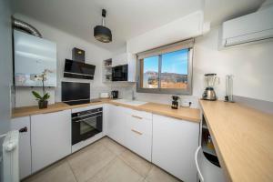 Apartmán má 1 ložnici, 1 koupelnu, ložní prádlo, ručníky, TV, kuchyň s kompletním vybavením a terasu s výhledem na moře. Koupelna v LE DAUPHIN - Front de Mer - Vue Exceptionnelle disponuje sprchou, pračkou, fénem a toaletními potřebami zdarma.