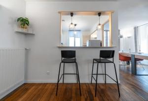Cet appartement se compose de 2 chambres, d'un salon, d'une cuisine entièrement équipée avec un réfrigérateur et une machine à café, ainsi que de 1 salle de bains avec une douche. Vous trouverez des serviettes et du linge de lit à Le Duplex - Grand appartement centre ville.