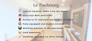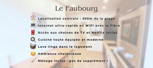 W apartamencie z 1 sypialnią w Le Faubourg Dieppe znajduje się salon z telewizorem, wyposażona kuchnia z lodówką i zmywarką oraz łazienka z suszarką. Ręczniki i pościel są dostępne w apartamencie Le Faubourg Dieppe.