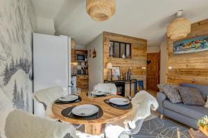 Apartmán ubytování se skládá z 1 ložnice, obývacího pokoje, plně vybavené kuchyně s lednicí a myčkou a 1 koupelnu. Koupelna v ubytování Le Flocon de Neige - Appt cosy avec terrasse je zařízena vanou a fénem.