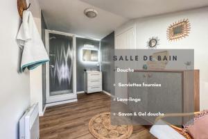The 1-bedroom apartment at Le Gite 4 - Charmant studio 30m2, idéal professionnels, 10min GOLFECH offers free WiFi, a flat-screen TV, a washing machine, and a fully equipped kitchen with a dishwasher and oven.