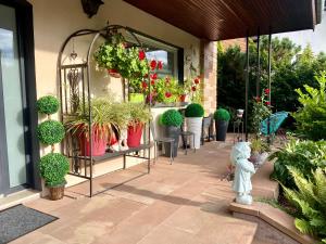 Featuring a private entrance, this apartment consists of 1 living room, 1 separate bedroom and 1 bathroom with a shower and a hairdryer. Guests will find a stovetop, a refrigerator, kitchenware and an oven in the kitchen. The apartment also offers a barbecue. Boasting a terrace with garden views, this apartment also provides a washing machine and a flat-screen TV with satellite channels. The unit provides 2 beds.